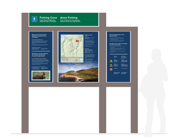 | Team | Project management/Planning/Site scouting/Image research/Concept/Design: Malini MacDonald at Parks Canada; Cartography: Parks Canada ASC cartography section; GIS: Parks Canada; Copy: Cape Breton Highlands National Park and Parks Canada ASC official language specialist. |