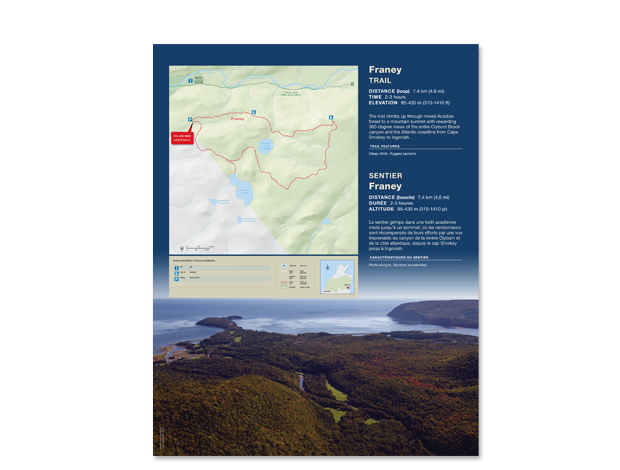 Integrated National Park Trailhead Orientation signage system and design for Cape Breton Highlands National Park of Canada in Nova Scotia.