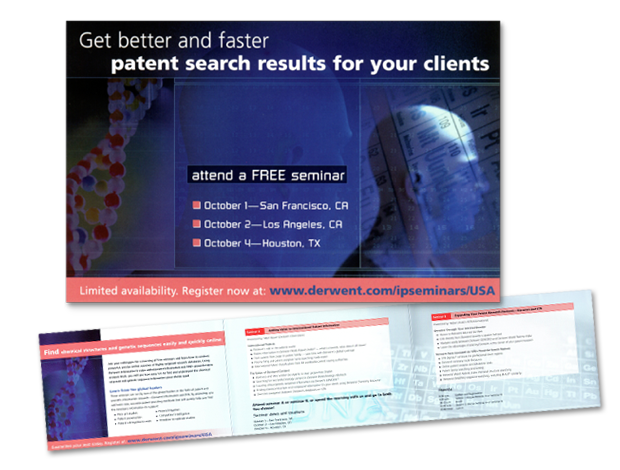| Description | ISI promoting a free seminar and workshop events for their product Derwent Variety of Direct Mailers for Thomson Scientific's products, seminars, shows and events. Thomson ISI's head office was located in Philadelphia, PA, USA. |