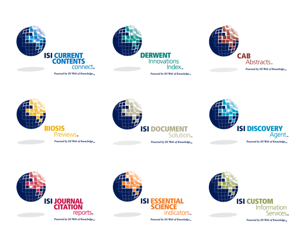 Description Visual identities/product logos for some of the products under the ISI Web of Knowledge™ platform which supports a family of 25+ products.